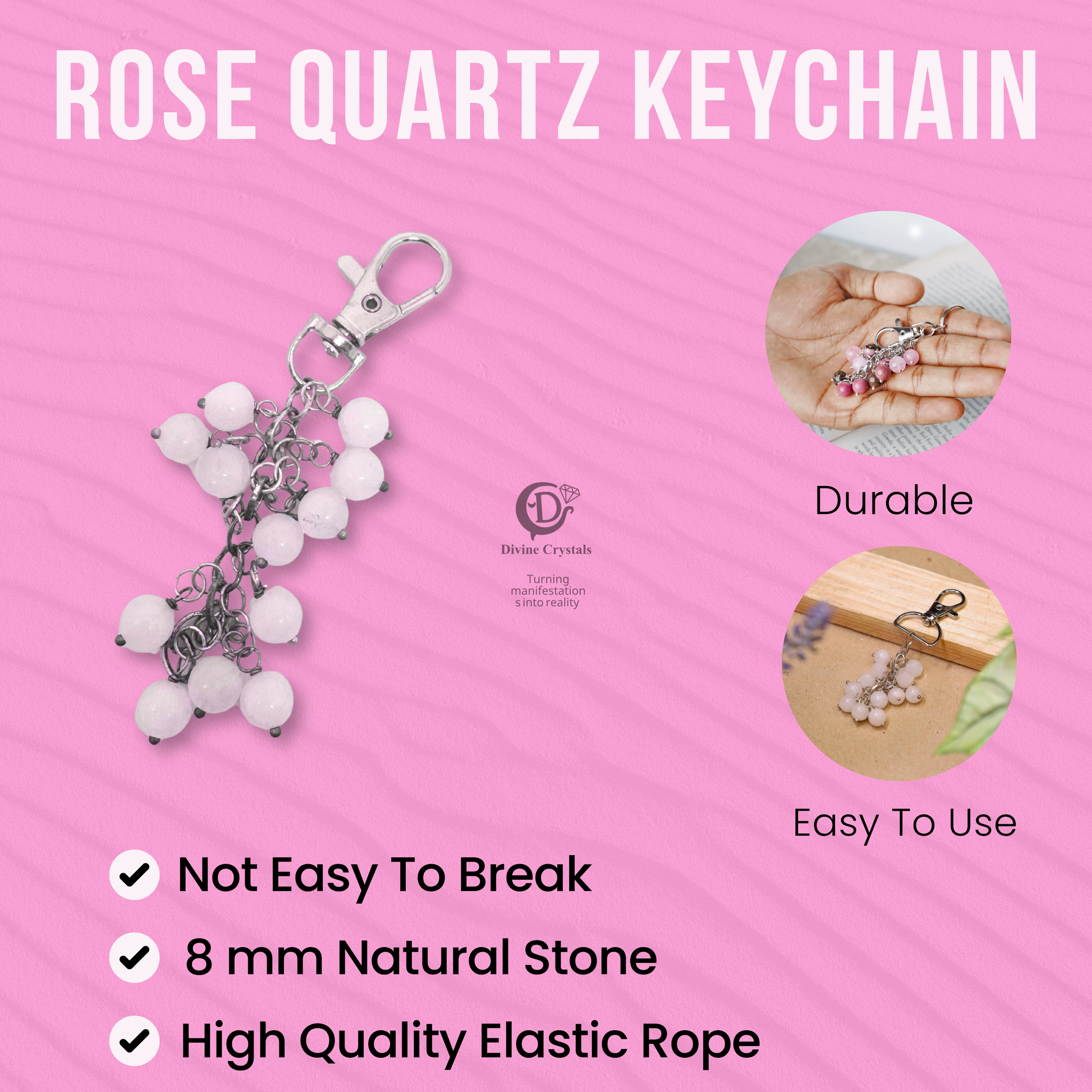 Carry the gentle energy of Rose Quartz wherever you go. This beautifully handcrafted Rose Quartz Keychain is made with 8 mm natural stones, designed to attract love, emotional balance, and positive vibrations into your daily life.